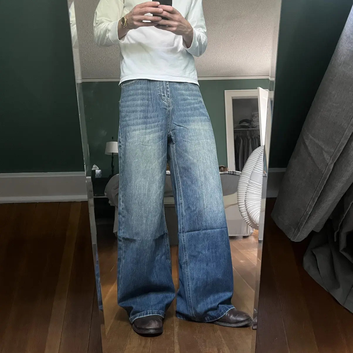 Our Sailor Blue Denim is crafted with high quality 9 OZ denim, and is treated with a pre-wash fading process giving them our signature vintage look. These jeans are in our classic Wide-Leg fit, giving them the perfect baggy fit. They feature a carabiner holder on the belt loop for added conveneince and customizability.