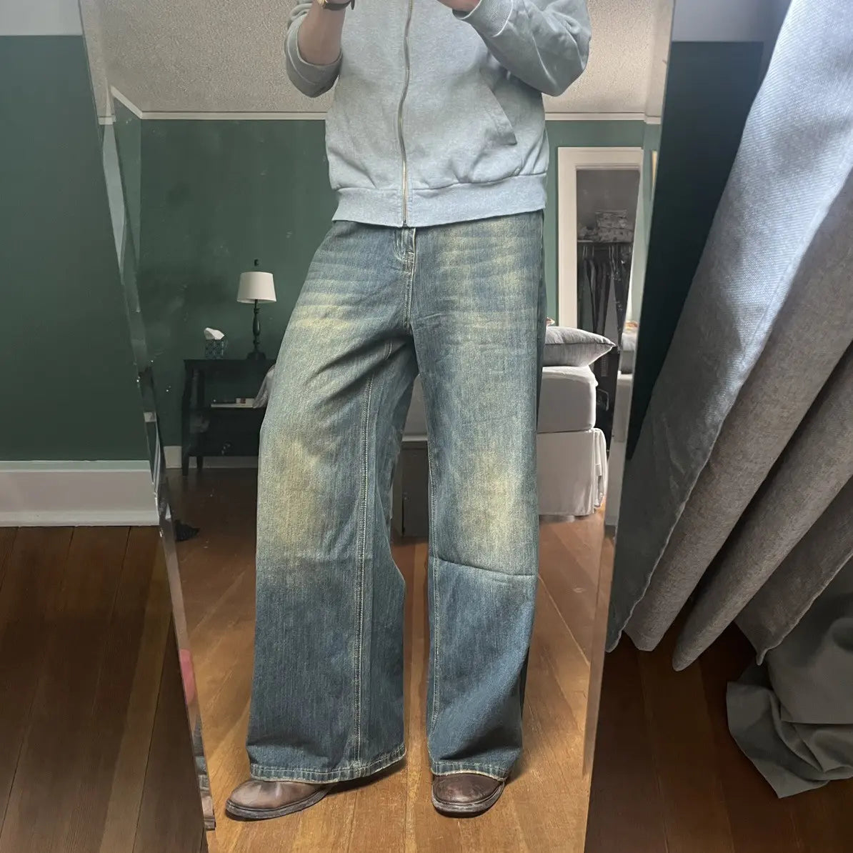 Our Sailor Brown Denim is crafted with high quality 9 OZ denim, and is treated with a pre-wash fading process giving them our signature vintage look. These jeans are in our classic Wide-Leg fit, giving them the perfect baggy fit. They feature a carabiner holder on the belt loop for added conveneince and customizability.